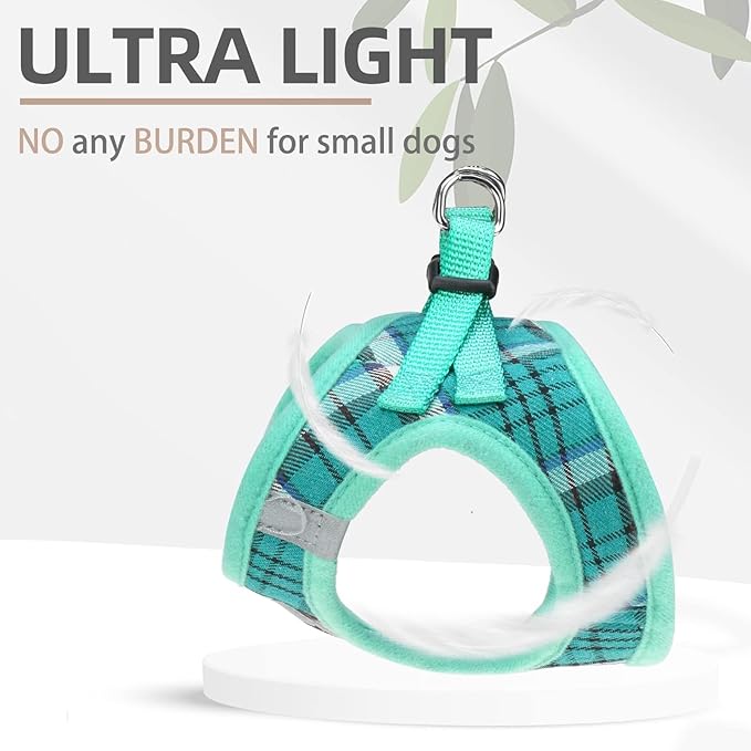 - [REFLECTIVE, PLAID PATTERN] - This Harness has two sides of reflective straps, and the middle logo also is reflective, so if you walk with your dog at night, then both of you will be safer! In addition, the classic plaid pattern is designed by our internal brand team, so it's very different from other normal harnesses. This plaid pattern looks both classic and stylish and is never out of date.
