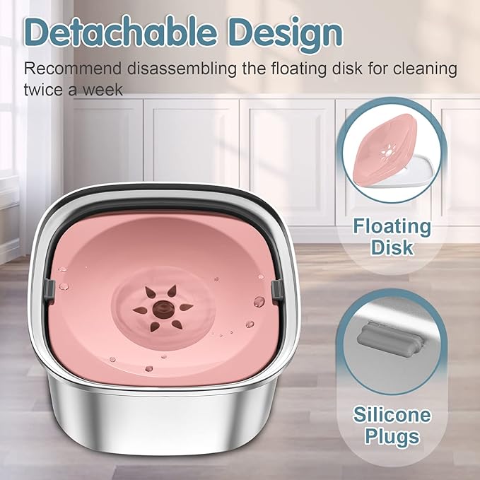 - Keep Floor Clean: Widened bowl mouth, floating disk, and silicone plugs combine to effectively prevent spill or splash to keep the floor clean. Stainless steel smooth bowl bottom with non-slide pads to avoid collision and scratch.