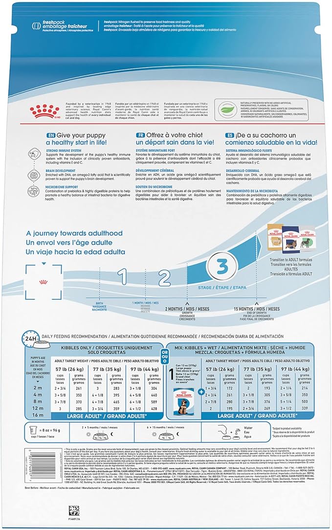 - FORMULATED FOR LARGE BREED PUPPIES: Royal Canin Large Puppy Dog Food is tailor-made for large breed puppies with an expected adult weight of 56-100 lb