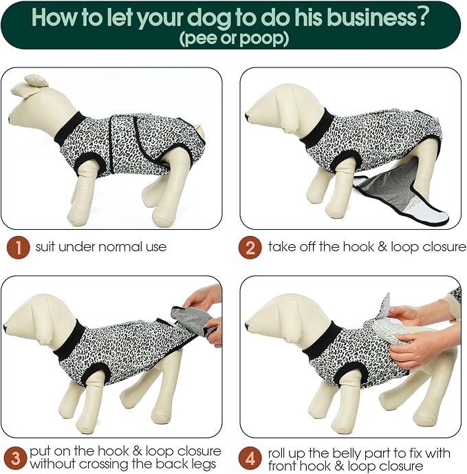 - RECOVERY SUIT for MALE FEMALE DOGS: Suitable for spaying and neutering, with an adjustable back length and closure for easy donning and doffing. Machine washable, easy to clean and dries quickly to ensure optimal hygiene for your pet during recovery