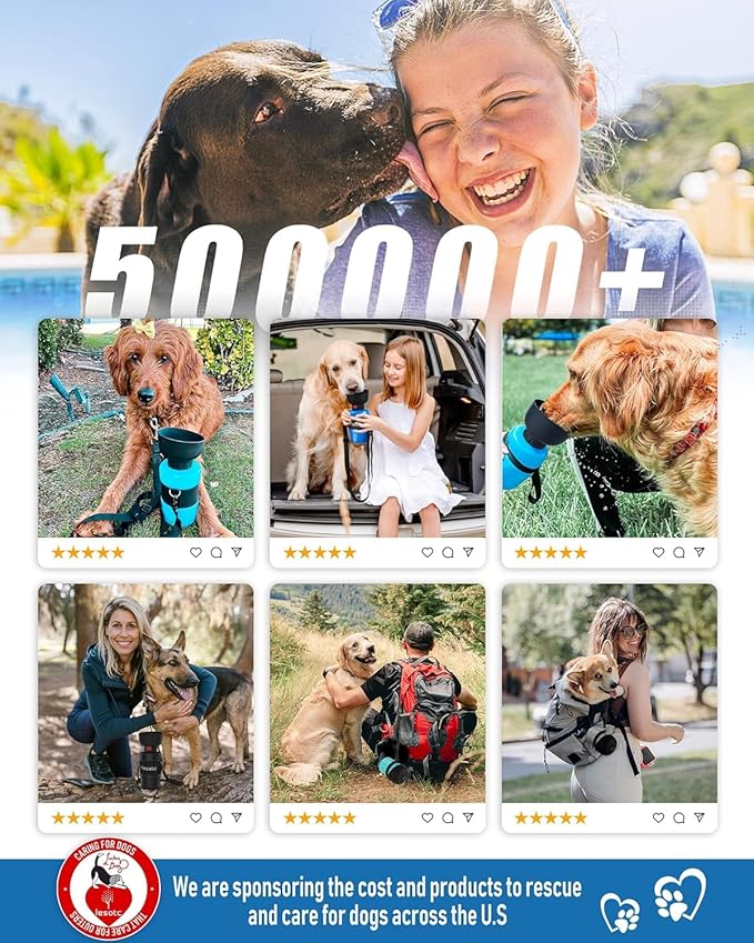 - Super Large Capacity: lesotc dog water bottle with a volume of 35oz/1000ml. Dog travel water bottle can provide safe, fresh, and healthy water for puppy during long walking, travel, hiking, camping and other outdoor activities. It’s addition to your dog accessories, perfect for dog beach essentials and dog camping essentials