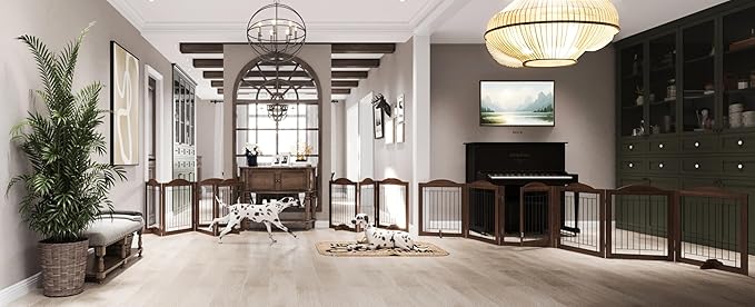 - Folding & Expandable Design: This freestanding pet fence effortlessly folds into a wide Z-shape, seamlessly adapting to hallways, entries, bedrooms, staircases, and other home spaces. You can select various colors to match your home décor, ensuring a perfect fit with your style.