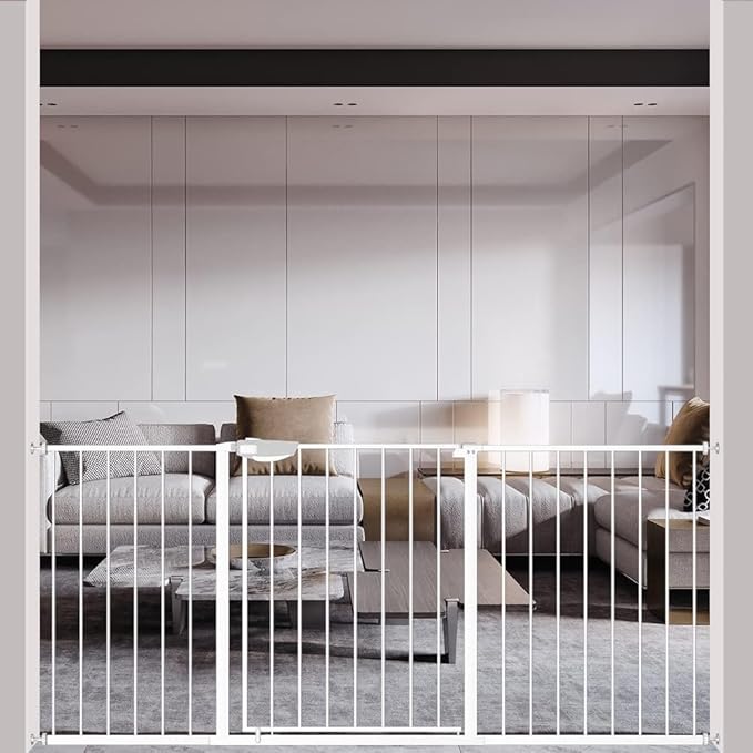 DEARBB Triple Lock Baby Gate for Stairs Doorways and House 31" to 86" Extra Wide Pressure Mounted Easy Walk Through Auto Close Safety Pet Gate White 49.21-67.32"