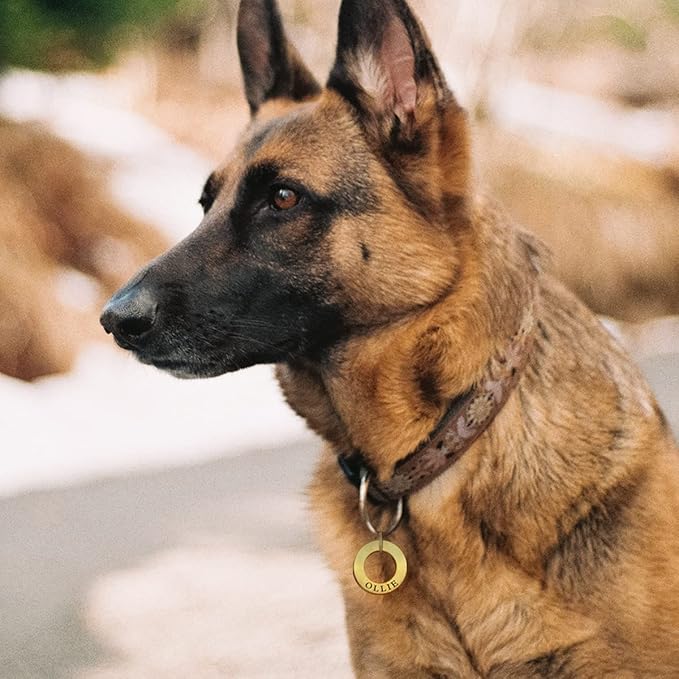 - Keep your pet always identifiable with our durable and stylish concentric circle dog tag. Made of premium materials, this tag is scratch-resistant and features deep engraving that will never fade or wear off.