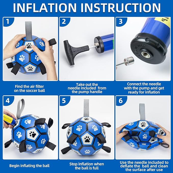 - Dog Soccer Ball Best Git For Your Dog - send your dog a bithday gift.House and Outdoor Dog Toyscan be played in the living room, pool,lake and beach,because it is also Water Toys Ball,no water absorption,noseepage.no deformation.lightwelight,easy to float in water.Dog Soccer Ball with Grab straps are great for dog catching