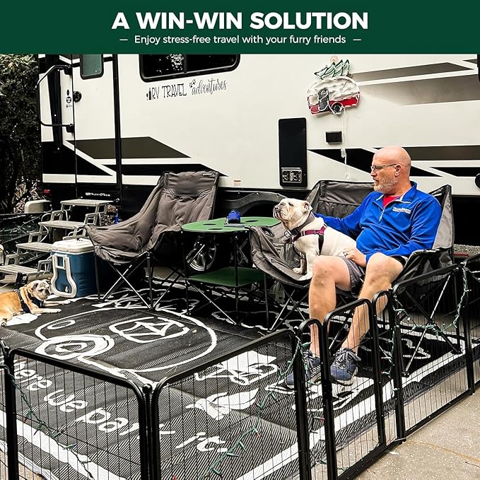 - Multi-scenario use: The FXW dog playpen features a powder coating that will help protect against rust and extend its life, which makes it ideal for RV camping, traveling, or for use in the yard. When used indoors, we recommend placing it on a dog pad or carpet to prevent the rods from scratching the floor, or please try our new floor protectors or dog pee pad for the same purpose.