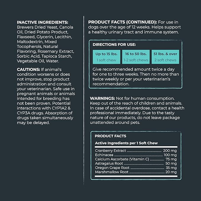- COMPREHENSIVE WELLNESS FORMULA: This dog bladder supplement combines Cranberry, Echinacea, and Vitamin C to provide balanced support for urinary and kidney health, assisting with overall wellness.