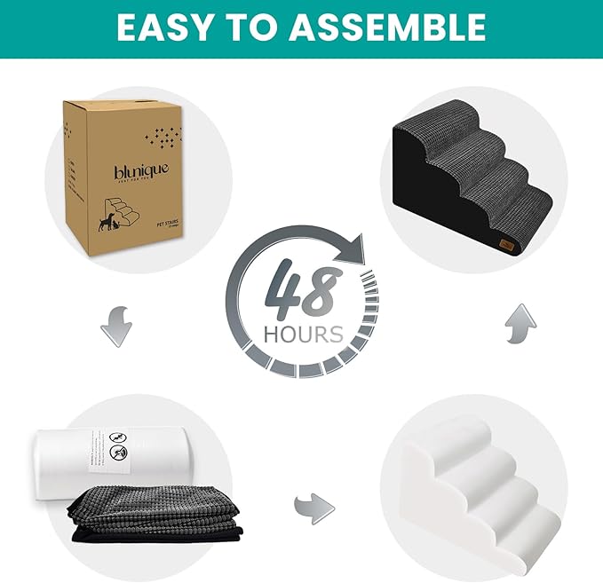 - Notice: Our dog stairs for bed are vacuum compression packed, open the vacuum packing and the high density sponge in the dog steps will fully expand rebound in 24-48 hours, please be patient.