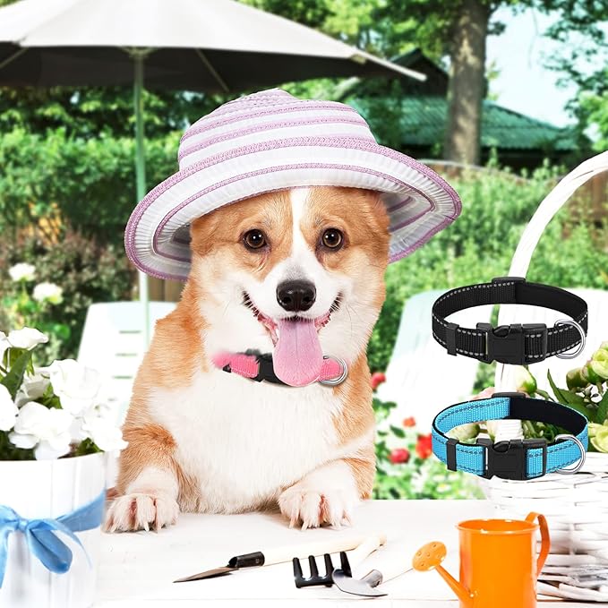 Sanwuta 12 Pcs Reflective Puppy Dog Collars Bulk for Litter Dogs Adjustable Safety Nylon Collars with Locking Buckle Soft Padded Breathable Puppy Collar for Cats Pets(Small)