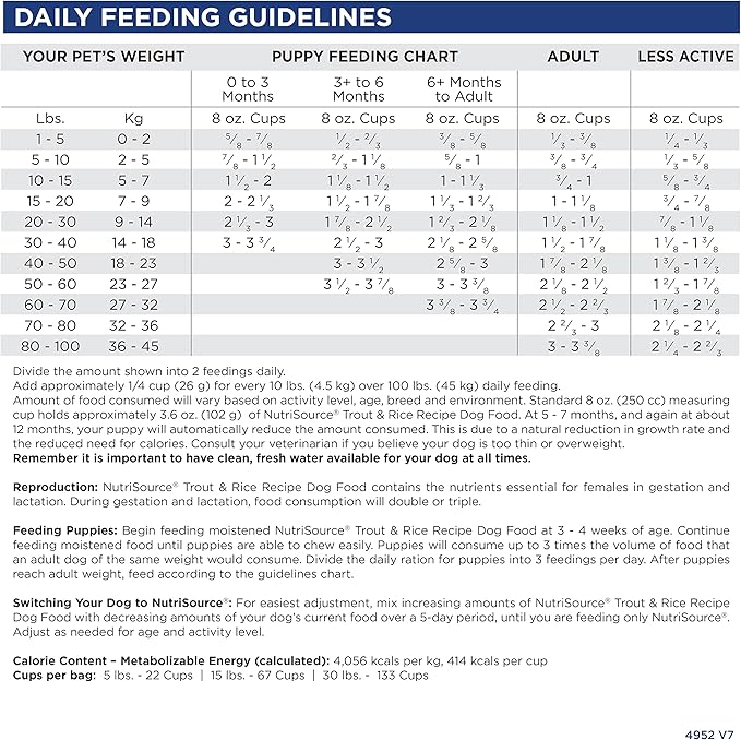- CONTAINS: (1) 26LB Bag of NutriSource Trout and Rice Dry Dog Food