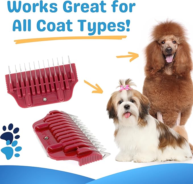 - CLIPPER GUARD ATTACHMENT: This Wide Guard Comb for Dogs Attachment has long pointed teeth for fast and easy Dog hair grooming. It pairs well with similar models of clipper blades for professional dog hair grooming