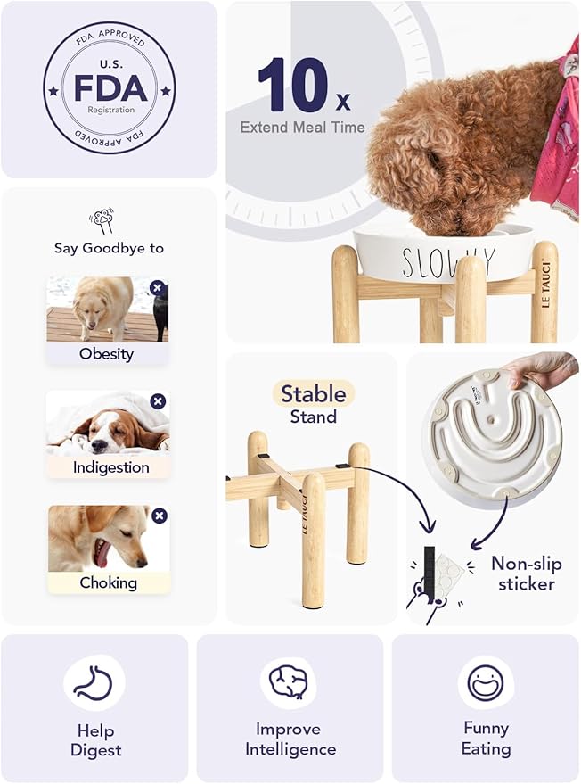 - Premium Ceramic, Prevent Your Dog From Eating Plastic:We found that plastic slow food bowls are easily damaged by dogs, they will bite and eat by mistake. The surface of the plastic will also fall off during use, which is not conducive to a healthy diet for dogs. We use premium ceramic, not easy to damage, so your dog could enjoy his food safely and healthily