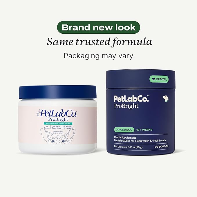 PetLab Co. ProBright Dental Powder - Dog Breath Freshener - Teeth Cleaning Made Easy – Targets Tartar & Bad Breath - Formulated for Large Dogs - Packaging May Vary