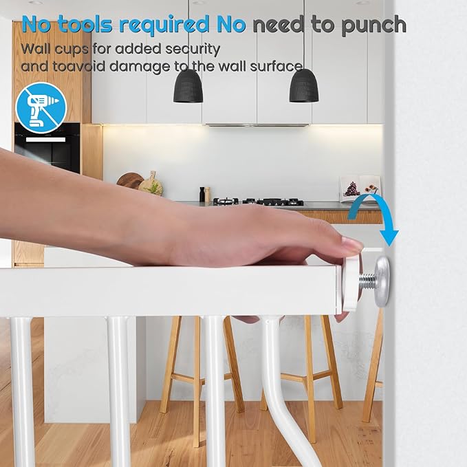 - Hassle-Free Installation: Pressure mounted tension baby gate with 4 pressured adjustment bolts can be easily and quickly installed within 10 minutes. No drilling or tools needed to protect your walls from damage. Note: Please do not remove the zip tie which is to fix the latch to the frame for easy installation until baby/child safety gate is completely assembled, and recommend to carefully read our assembly instructions & user manual before installing.
