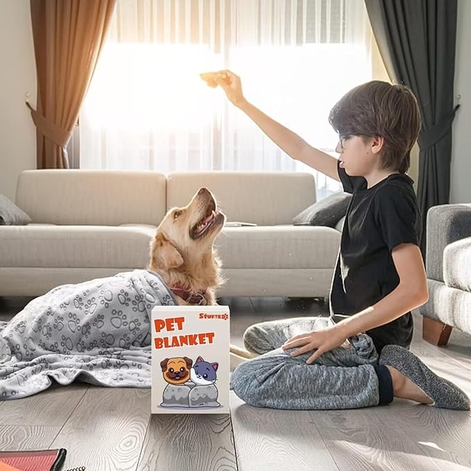 - PREMIUM MATERIAL FOR PETS ONLY: Super Soft & Warm comfy fleece for your pets, exclusive cute paw prints design on the top, lovely solid grey color on the back, no fear of peeing, bitting, chewing and tearing. Your dog will love this dog products!