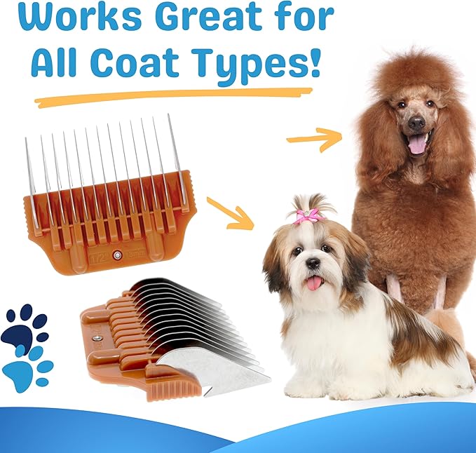 - CLIPPER GUARD ATTACHMENT: This Wide Guard Comb for Dogs Attachment has long pointed teeth for fast and easy Dog hair grooming. It pairs well with similar models of clipper blades for professional dog hair grooming