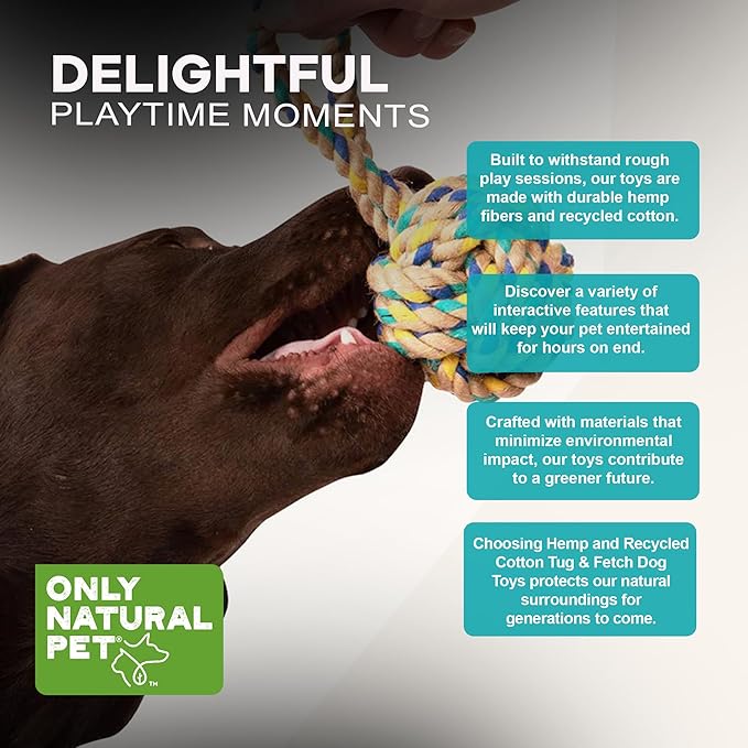 - MADE WITH HEMP FIBERS AND RECYCLED COTTON: Crafted with a combination of durable hemp fibers and recycled cotton, our Only Natural Pet Hemp and Recycled Cotton Tug & Fetch Dog Toys are perfect for eco-conscious pet owners. By choosing these toys, you're making a positive impact on the environment while providing your furry friend with endless entertainment.