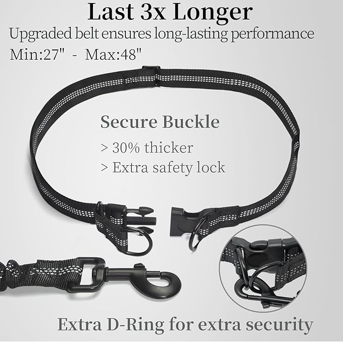 - Hand free waist wearing: Enjoy a waist dog running leash belt that lets you freely use your phone or read a newspaper without feeling restrained by your Dog's movements