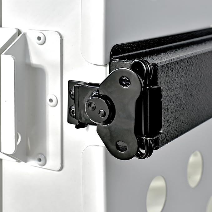 - SAFE AND SECURE: Constructed of durable lightweight aluminum and thoughtfully engineered with your dog’s safety in mind. Strong and secure design to ensure your pet is safely contained at all times. Includes 16 knurled bolts giving you the option to quickly increase the overall rigidity and strength of your crate.