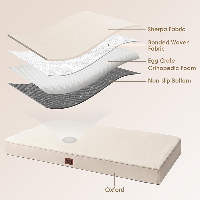 - ULTIMATE SLEEP SURFACE: Plush sherpa top and non-skid bottom of EHEYCIGA flat dog mattress bed creates ultimate softness and coziness for your pets without moving everywhere.