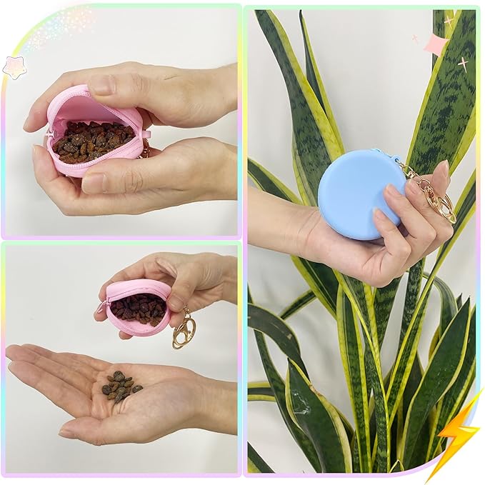 - 【Pocket-Sized】:Our dog food bag is different from other large capacity styles, with a 2.75*2.75*0.77 inch design,Small enough to fit in jeans, jacket pocket, or purse. You can also attach this treat pouch to your leash for easy access! Perfect to grab on the go or for short outings.