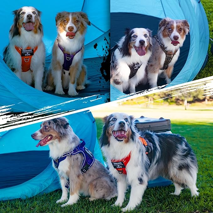 - Ultra Safety Design: The reflective trims all around the tactical dog harness for optimal visibility and security at night. Two secure metal leash attachments for different occasions. Daily back clip for well-trained dog's casual walking or jogging. No-pull front clip helps discourage your dog from pulling