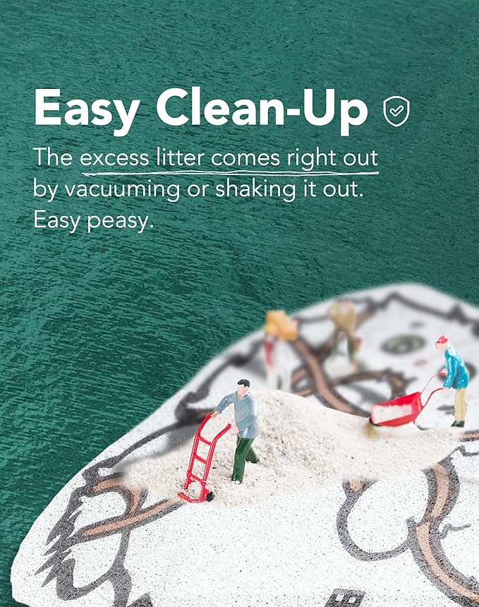 - ✨ Easy Clean-Up: You can clean Lukamoo’s litter mat by vacuuming or shaking it. The excess litter comes right out. Easy peasy.