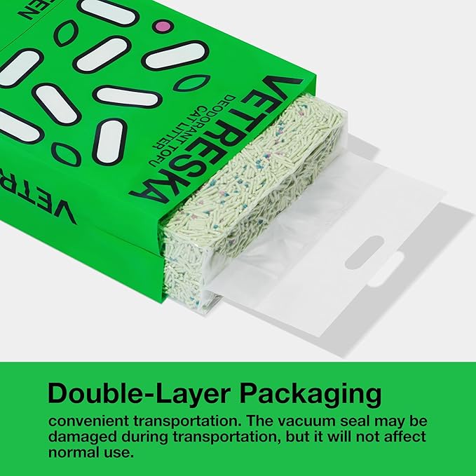 - 【Vacuum Packaging】 Our tidy cat litter is packaged in an inner vacuum package for secure transportation and easy storage. When you receive the package, it may initially appear solid like a brick, but simply open the inner bag and allow some air in. Within moments, the litter will loosen up and be ready for use