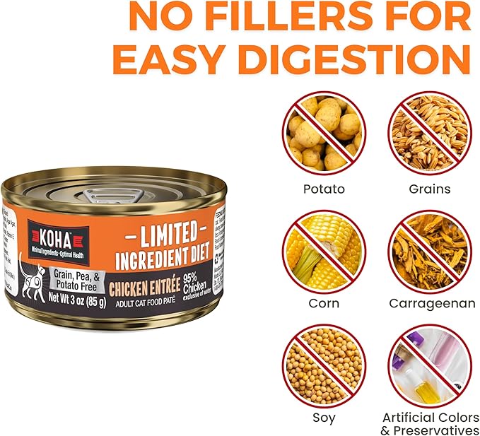 KOHA Limited Ingredient Diet Chicken Pate for Cats - Single Meat Wet Cat Food for Sensitive Stomachs - Pate Cat Food with No Fillers - 3oz Pack of 24