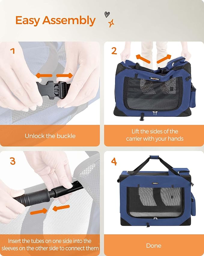 - 【ANTI-ESCAPE & STRONGER】Featuring self-locking zippers that ensure pets can't open it from the inside, the travel dog crate enhances safety while traveling. The thick steel frame and Oxford fabric are scratch- and tear-resistant for prolonged service life