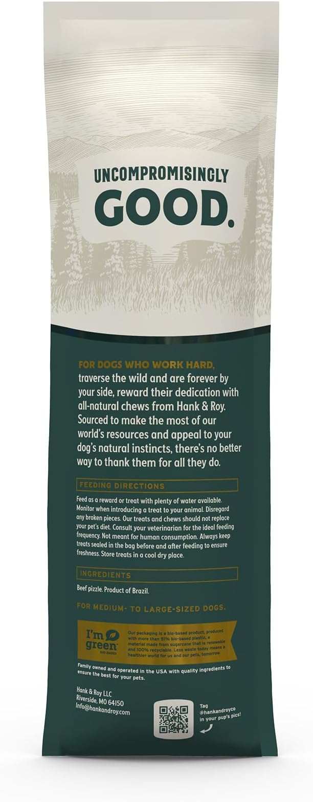 Hank & Roy All-Natural, Single-Ingredient Dog Bully Sticks, Long Lasting, Easily Digestible Dog Chews, Antibiotic and Hormone Free 12” Beef Pizzle Sticks for Dogs, Pack of 4