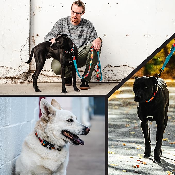 - Stylish and Functional: The welded steel D-ring and sturdy nylon buckles ensure a secure attachment point for your leash, giving you the confidence to control even the most powerful dogs during walks, training, or outdoor play. UV and stain-resistant materials ensure your gear stays looking sharp, rain or shine, so you can trust it to perform in any weather conditions while keeping your dog looking stylish on every adventure.