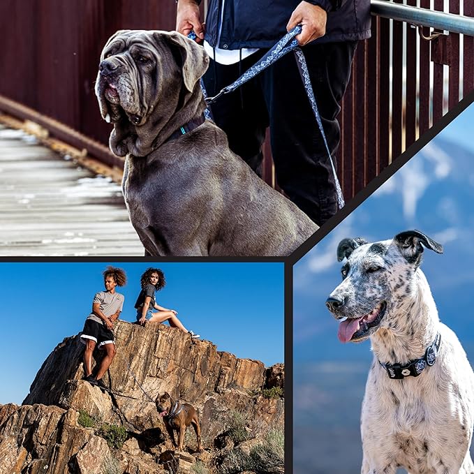- Stylish and Functional: The welded steel D-ring and sturdy nylon buckles ensure a secure attachment point for your leash, giving you the confidence to control even the most powerful dogs during walks, training, or outdoor play. UV and stain-resistant materials ensure your gear stays looking sharp, rain or shine, so you can trust it to perform in any weather conditions while keeping your dog looking stylish on every adventure.