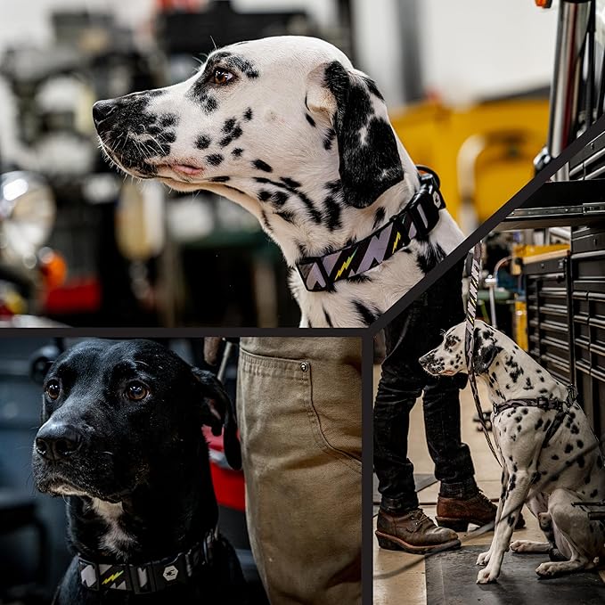 - Stylish and Functional: The welded steel D-ring and sturdy nylon buckles ensure a secure attachment point for your leash, giving you the confidence to control even the most powerful dogs during walks, training, or outdoor play. UV and stain-resistant materials ensure your gear stays looking sharp, rain or shine, so you can trust it to perform in any weather conditions while keeping your dog looking stylish on every adventure.