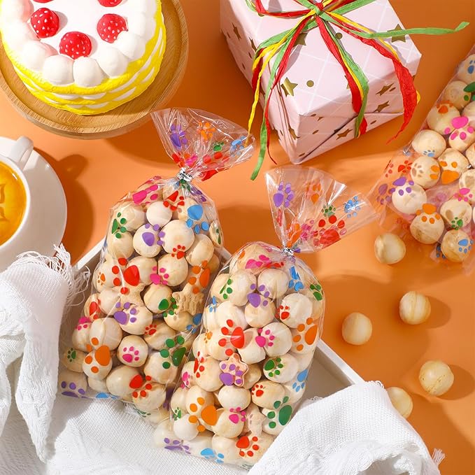 - Design: these cellophane bags are designed with paw print patterns, which can add pet party atmosphere, catch both children and adults attention, cater to the interests and taste of children