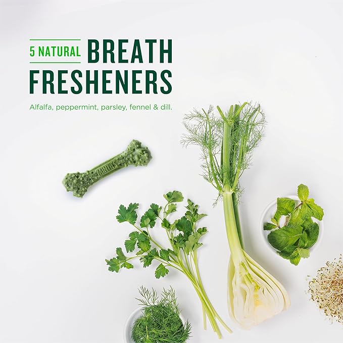 - Dog Chews for Cleaning Teeth and Promoting Good Dog Oral Health: Using Minties dog dental chews daily helps promote oral health and freshens your dog's breath with five (5) breath fresheners alfalfa, parsley, fennel dill, and peppermint