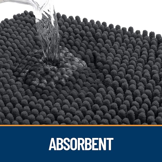 OLANLY Dog Door Mat for Muddy Paws 36x24, Absorbs Moisture and Dirt, Absorbent Non-Slip Washable Doormat, Quick Dry Chenille Mud Mat for Dogs, Entry Indoor Entryway Carpet for Inside Floor, Dark Grey
