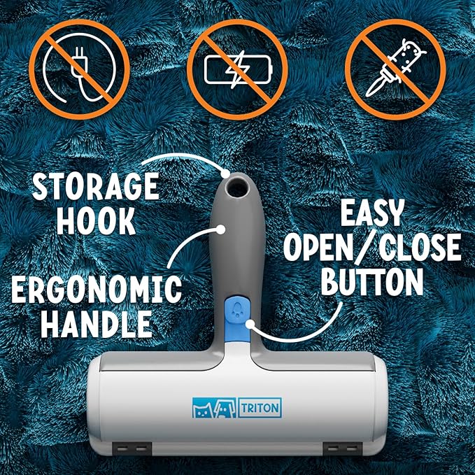 - EFFORTLESS PET HAIR REMOVAL: Dual rubber strips trap twice as much pet hair with every pass, gliding smoothly across fabric and surfaces. This reusable pet lint roller grips twice the fur, lint, and dander quickly, keeping homes, couches, and clothes free of buildup. A lightweight cleaning tool for dogs, cats, and pets, it delivers powerful fur removal that’s simple to use and gentle on fabric.