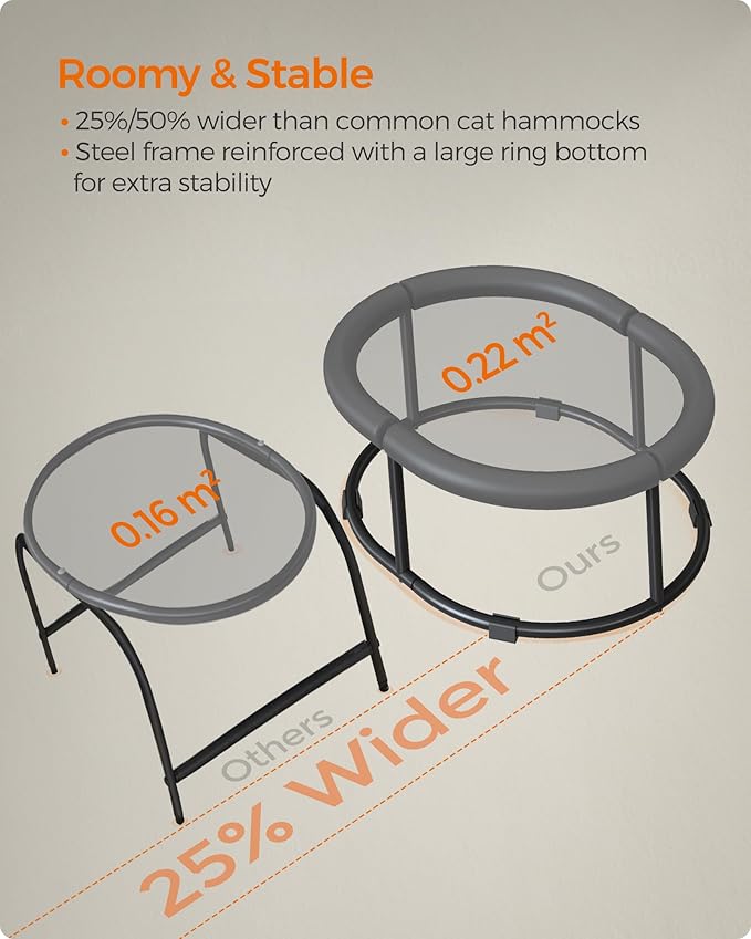 Feandrea Pet Bed, Cat Hammock, Elevated Cat Bed for Multiple Cats, with Removable Washable Mesh, for Pets up to 20 lb, Oval, Gray UPCB001G01