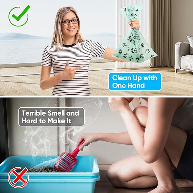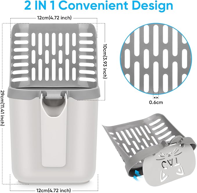 - 【Larger Scooper & Container】 Our product has a larger scooper to shovel more cat’s poops,and larger container to fill more cat’s poop, and for 2-3 cats to use! it is a upgraded design for cat owner and also is a great gift for cat lover.