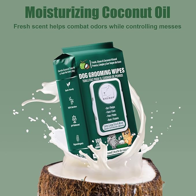 - Coconut Oil - With bamboo fiber and coconut oil, this dog wipes cleaning deodorizing effectively removing dirt and odors. Coconut oil moisturizes every inch of your dog and cat.