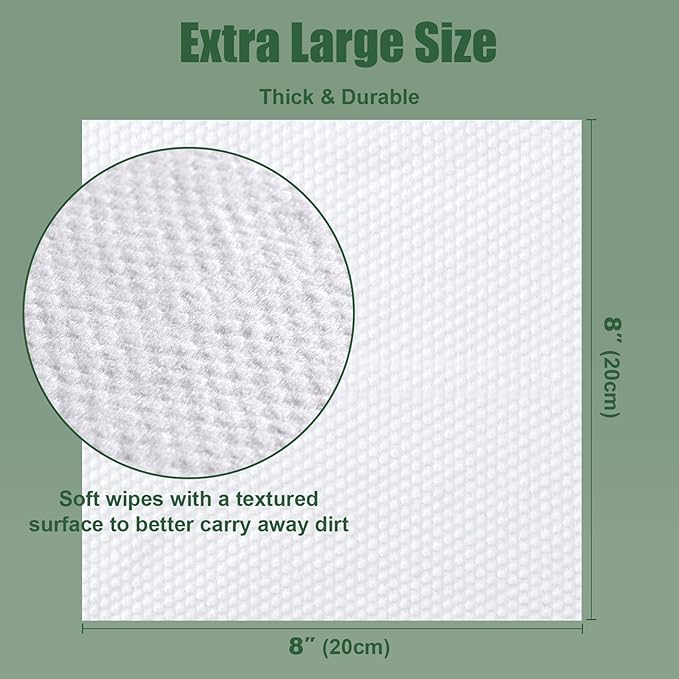- Generously Sized Wipes! - Our soft 8'' x 8'' dog paw wipes are large enough to tackle wrinkles, fur, paws, butt, and ear care. Super efficient way to clean, whether you're traveling or at home, these dog bath wipes deodorizing will keep your paw friend fresh.