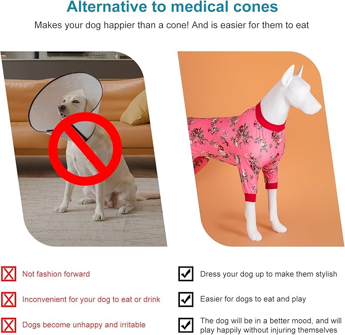 LovinPet Full Body Suit for Large Dog, Dog Bodysuit for Large Dogs,Lightweight Stretchy Fabric,Hot Pink Roses and Orchids Print, Pet Uv Protection, Onesies for Dogs, Pajamas for Pitbulls,2XL