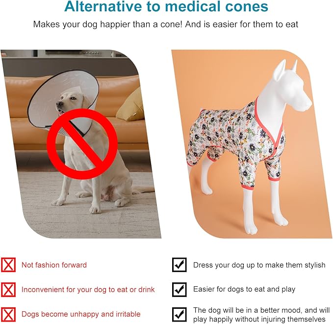 LovinPet Extra Large Dog Body Suit - Pet Anxiety Relief Shirt, Anti Licking Dog Onesie, Lightweight Fabric, Snapdragon Print, Pjs for Large Dogs, Dog Clothes for Pitbull,3XL