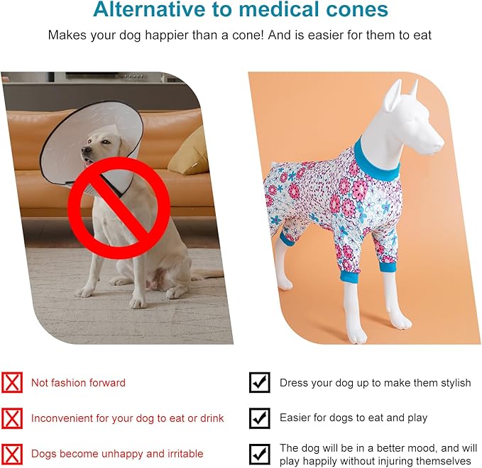 LovinPet Dog Pajamas Large Breed, Anti Licking, Anxiety Calming Dog Clothes,Lightweight Stretchy Fabric,Pretty Floral Print,Onesie for Large Dogs,Pitbull Clothes Pet Costume,Pet Party Outfit, Medium