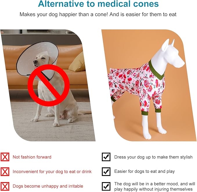 LovinPet Dog Pjs Outfits Large Breed, Pet Anxiety Relief PJ's,Anti Licking Dog Surgery Recovery Onesie,Undershirt for Pet Sweater,Pjs for Dogs,White, Hot Pink Brushstroke Floral Print Pet Pajamas,2XL