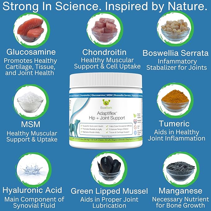 Adaptiflex Natural Joint Supplement for Dogs - Chondroitin, MSM, & Glucosamine for Dogs Hip and Joint Supplement - Aids in Joint Pain Relief - Hip and Joint Soft Chew Supplement for Dogs-Peanut Butter