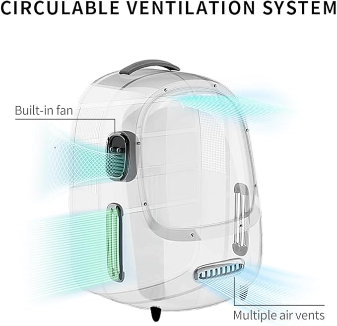 - [Comfortable and Breathable] Updated 2.0 Ventilation system helps accelerate the air circulation.Plus you can adjust the wind power by twisting the fan knob. Multiple air vents to create convection, allowing pets to breathe fresh air even without a fan.