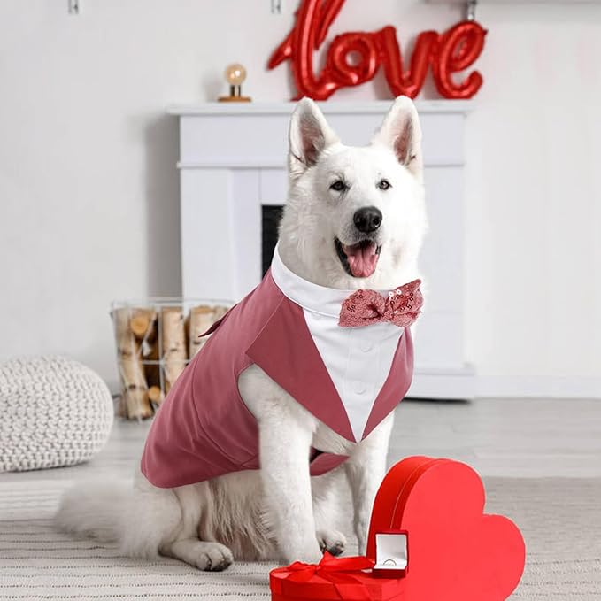 - Two Piece Set: Formal Dog Tuxedo and Dog Wedding Bandana Set, can be used seprately. Bandana for comfortable wear featuring neck or bow tie along with decorative buttons to show off your best friend's personality
