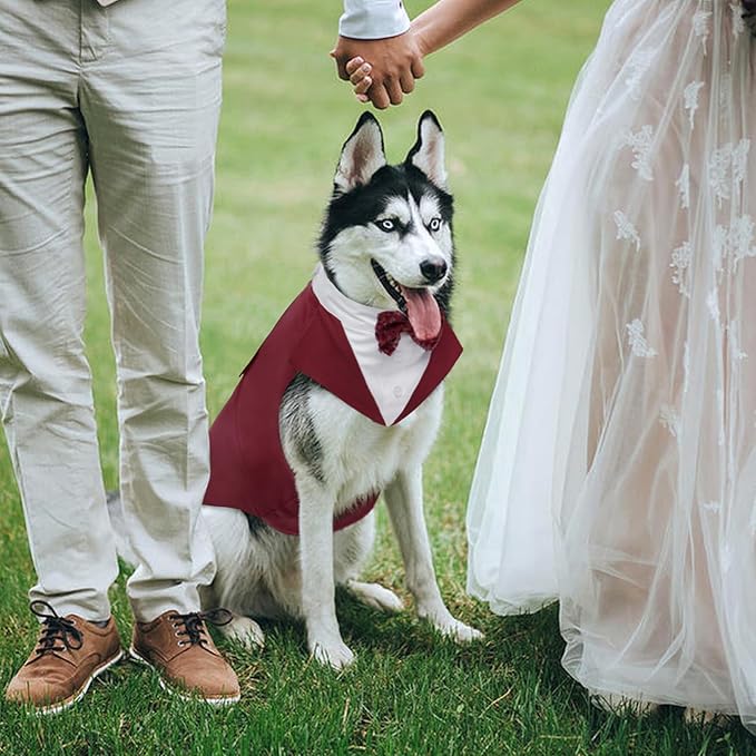 - Two Piece Set: Formal Dog Tuxedo and Dog Wedding Bandana Set, can be used seprately. Bandana for comfortable wear featuring neck or bow tie along with decorative buttons to show off your best friend's personality